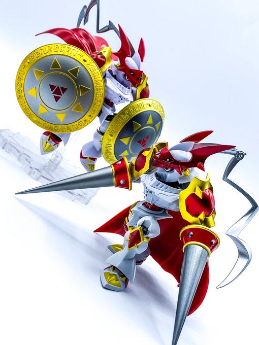 【続き】ポーズをつけて加工するとこんな感じ! やはりデュークは武装が大きいのでポージングが少し難しいですね💦 ダブルファイナルエリシオンは食らったらひとたまりも無さそう笑 #オモ写 #デジモン #digimon #デジタルモンスター #digitalmonster #デュークモン #ネクスエッジスタイル