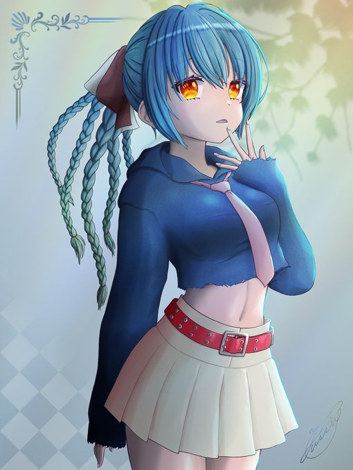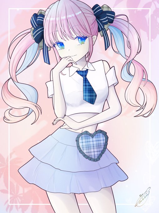 制作過程の動画も見れます(*ᴗˬᴗ)⁾ ↓↓↓ ibispaint.com/art/813786370/ #ibispaint #オフショルダー #ティアードスカート #ツインテール #ネクタイ #イラスト好きさんと繋がりたい #絵師さんとつながりたい