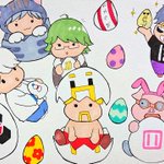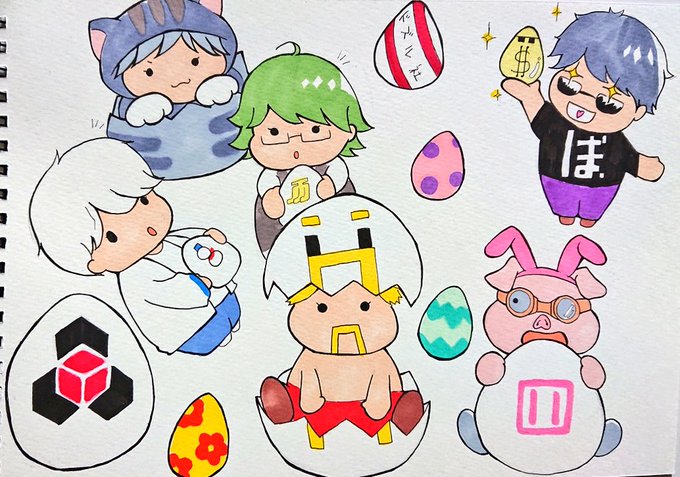 今更なイースター絵。 卵から産まれた社長 飾り付け中のおんおら 隠れてるつもりのネコおじ 泥棒ぼんさん 卵温め中のお茶目なMEN。。的な絵です。 #ドズってる #ぼんさん何してんすか #誰でも見れますねぇ #はよ見ろやあ #見るかもわからん #ネコおじ