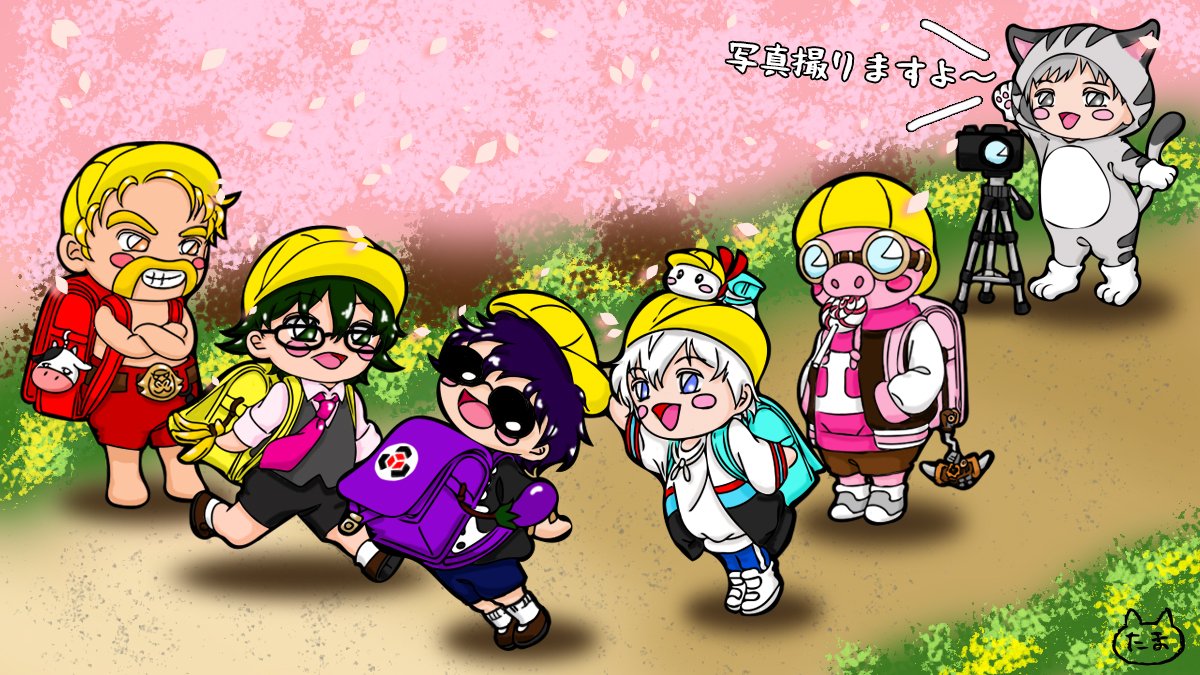 さくらもちさんの可愛い作品から インスパイアされて描きました♪ いっちねんせ~になったよ🦍🍆🍌⛄🐷 (ネコおじさんは引率するお兄さん位置かなw) twitter.com/SAKURA_mochi_6… #ドズル社アート #ドズってる #ぼんさん何してんすか #はよ見ろやあ #見るかもわからん #誰でも見れますねぇ #ネコおじ