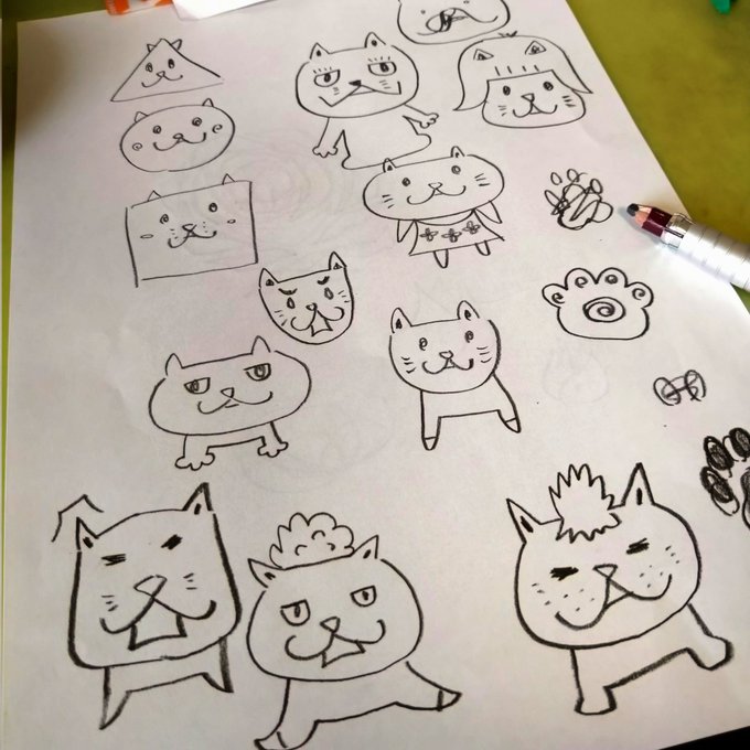 おはようございます😸 イラストレーターでのトレース(パス切り)作業に疲れて来たので… ちょっと落描きタイム😸✎ 今日も元気に行きましょう✨ #zucoasobi #ZUCOASOBI #ネコおっさん #落描き