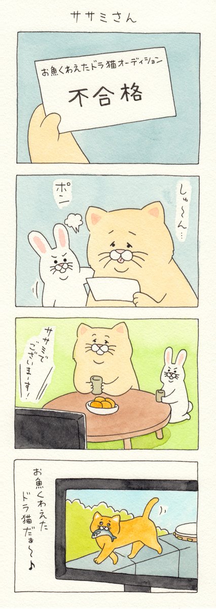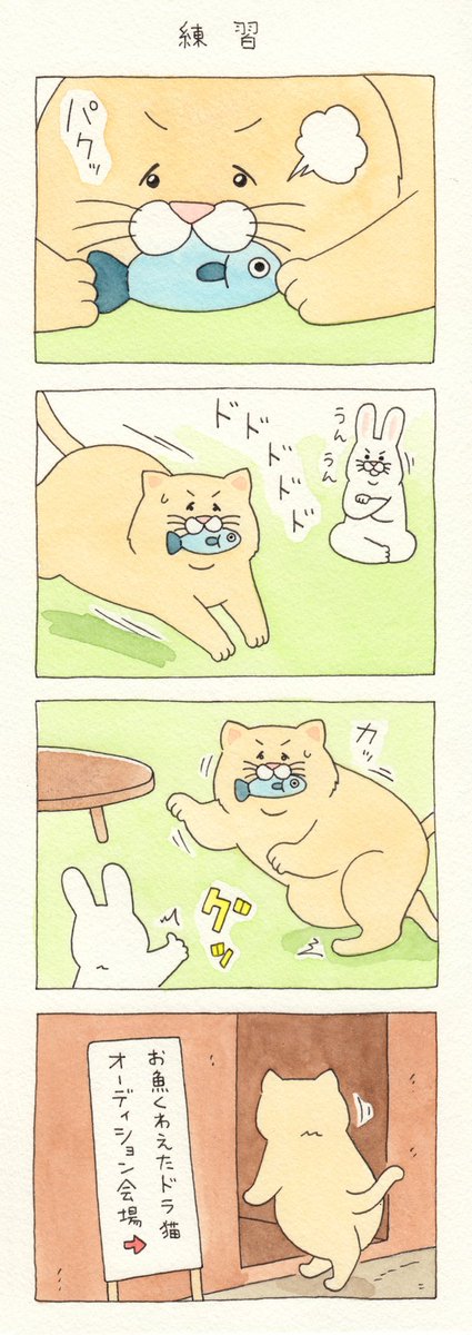 4コマ漫画ネコノヒー「お魚くわえたドラ猫オーディション」qrais.blog.jp/archives/17736… #ネコノヒー #キューライス #池袋パルコキューヴル美術館ミュージアムショップ開店中