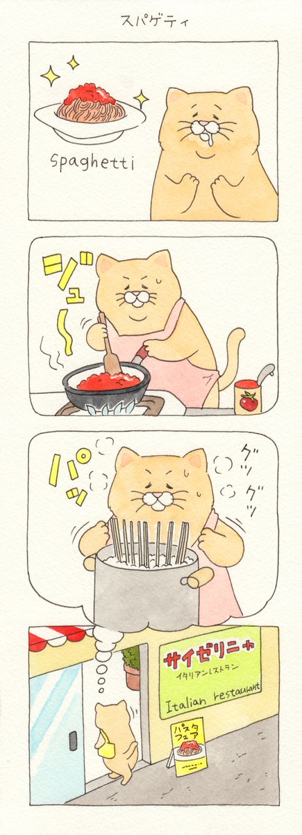 4コマ漫画ネコノヒー「スパゲティ」qrais.blog.jp/archives/18592… ネコノヒー第4弾スタンプ→ line.me/S/sticker/8189… #ネコノヒー #キューライス