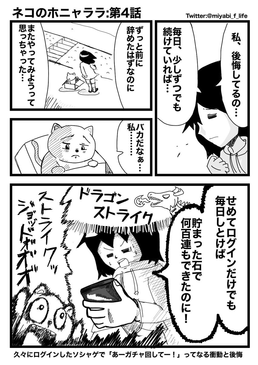 「ネコのホニャララ(第4話)」です🐈‼️ ソシャゲあるある描きました🖋🎨 みんな経験あるよね...?笑 #ネコホニャ #コメディ #漫画が読めるハッシュタグ #マンガが読めるハッシュタグ #モンスト #パズドラ #イラスト #Web漫画