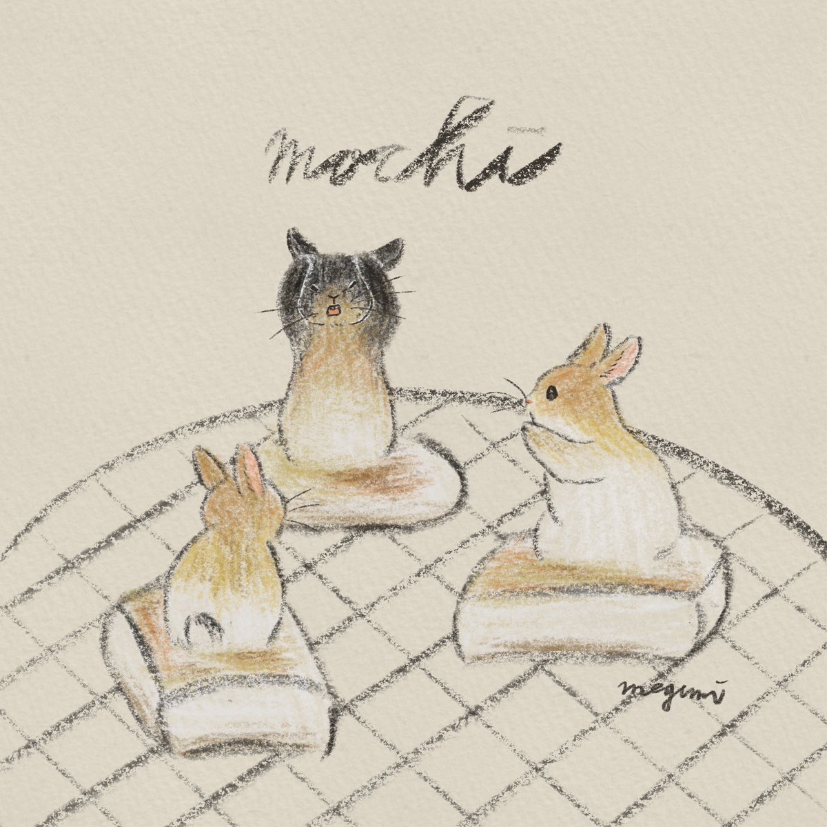 mochi 餅、丸餅だけ焦がしてしまうのですが何故?四角は切れ目が入ってるから?不思議です。 #イラスト #絵本 #挿絵 #可愛いイラスト #動物イラスト #イラストレーション #イラスト好きな人と繋がりたい #うさぎイラスト #ネザーランドドワーフ #落書き #一日一絵 #正月イラスト