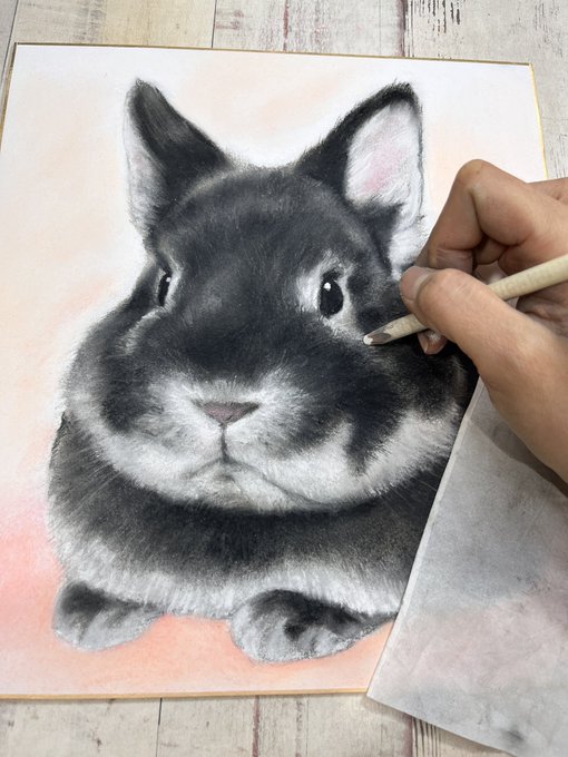 我が家のくろまめちゃん、全身バージョンを描いてます。やっぱりおまんじゅうポーズが一番好き🥰あーかわいい💕ほんとかわいい💕見てかわいいから。 #パステル画 #ペット似顔絵 #絵描きさんと繋がりたい #ネザーランドドワーフ