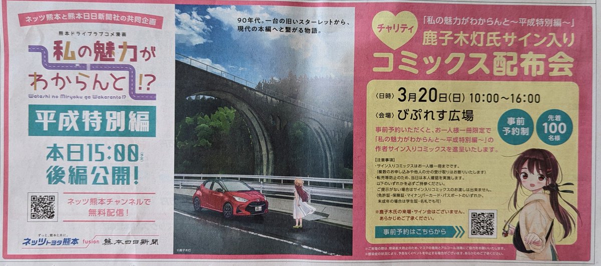2年前のこの時期に熊日新聞さんを突如ジャックしスタートした漫画「私の魅力がわからんと!?」 #私のMT 1話から最終話、そして特別編がお読み頂けます❗ 2年前が懐かしい…❗ このGW、1話から読み直してみるのはいかがでしょうか😆🌸 netz-kumamoto.com #ネッツ熊本 twitter.com/ima_tomoasa/st…