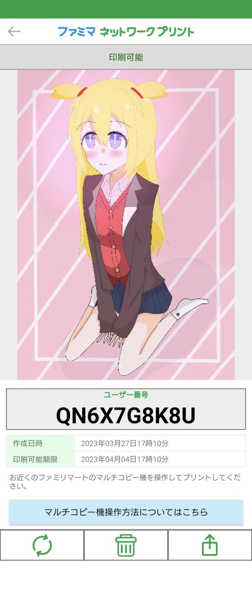 【ネットプリント📄📸】 年賀状イラスト2023只今より期間限定でスタートです🙂 是非よろしくお願いします😉👏 ●ユーザー番号:TJEPG9MYPE ●場所:ローソン🏪 ●印刷可能期間:1/15(日)〜1/22(日)終日迄 ●価格:1枚30円~(2Lサイズは80円) #ネップリ #イラスト好きな人と繋がりたい twitter.com/tig0106_paint/…