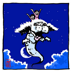 今日のお絵描き。我が家のワンコ達は時々ファルコンみたい💕と言ってもらえるので、ファルコンに乗せてみました😆 #お絵描き #イラスト #アナログ絵 #drawing #illustration #犬 #dog #シュナウザー #schnauzer #ファルコン #Falkor #ネバーエンディングストーリー #TheNeverEndingStory