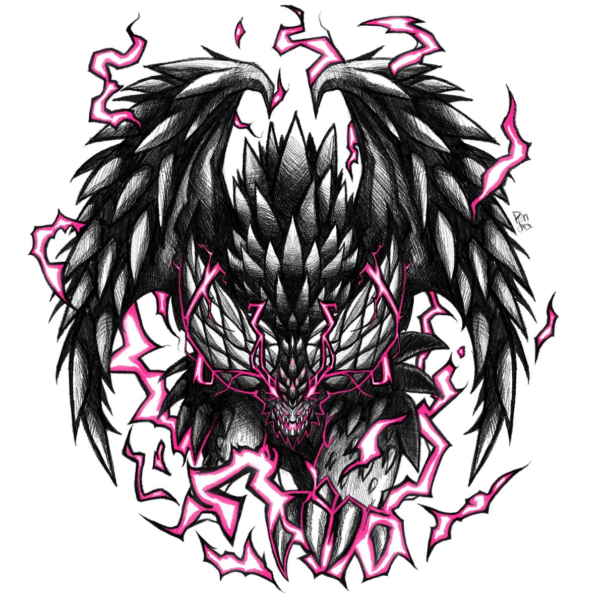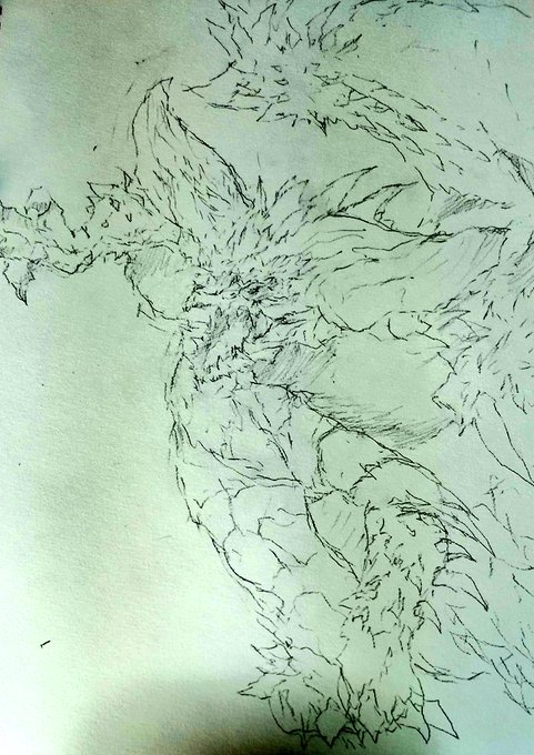 筆ペンで悉くを滅ぼすネルギガンテ描きました‼︎ Ruiner Nergigante drawn with a brush pen 🦔 #MonsterHunter #モンハン #ネルギガンテ #Nergigante #art #drawing #illustration