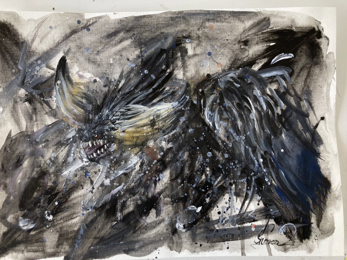wip 思い立って #モンハン の #ネルギガンテ を描き始めたけど、シルエットとったあたりでもうツラい💦完成するのかな😅 #絵描きさんと繋がりたい #MHWアイスボーン #ファンアート #イラスト