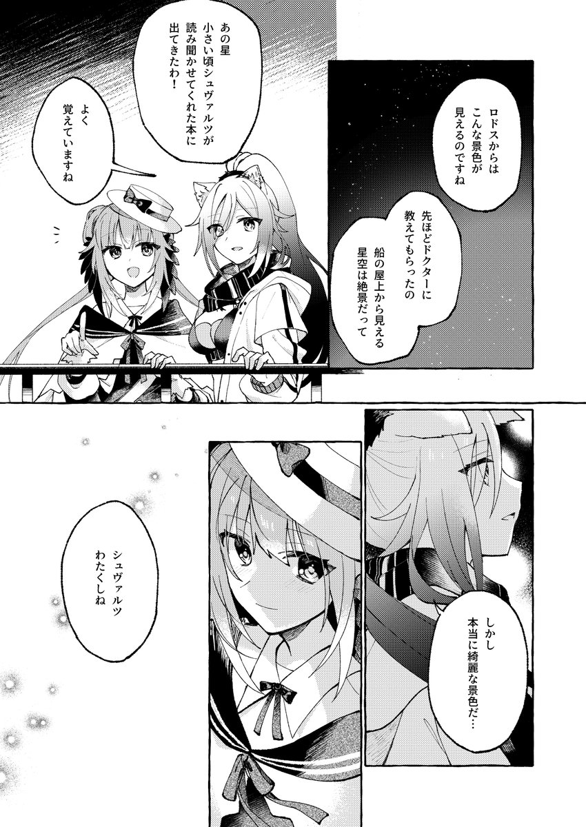 02/23(祝)開催予定のア/ー/ク/ナ/イ/ツ webオンリーノアの休日2で発行予定の新刊サンプルです。 セイロンとシュヴァルツがロドスに着任して間もない頃のお話です。CP要素あるので苦手な方はご注意ください。(1/2) 🍈予約→ melonbooks.co.jp/detail/detail.… #ノア休2_準備中 #ノア休2_サークル告知