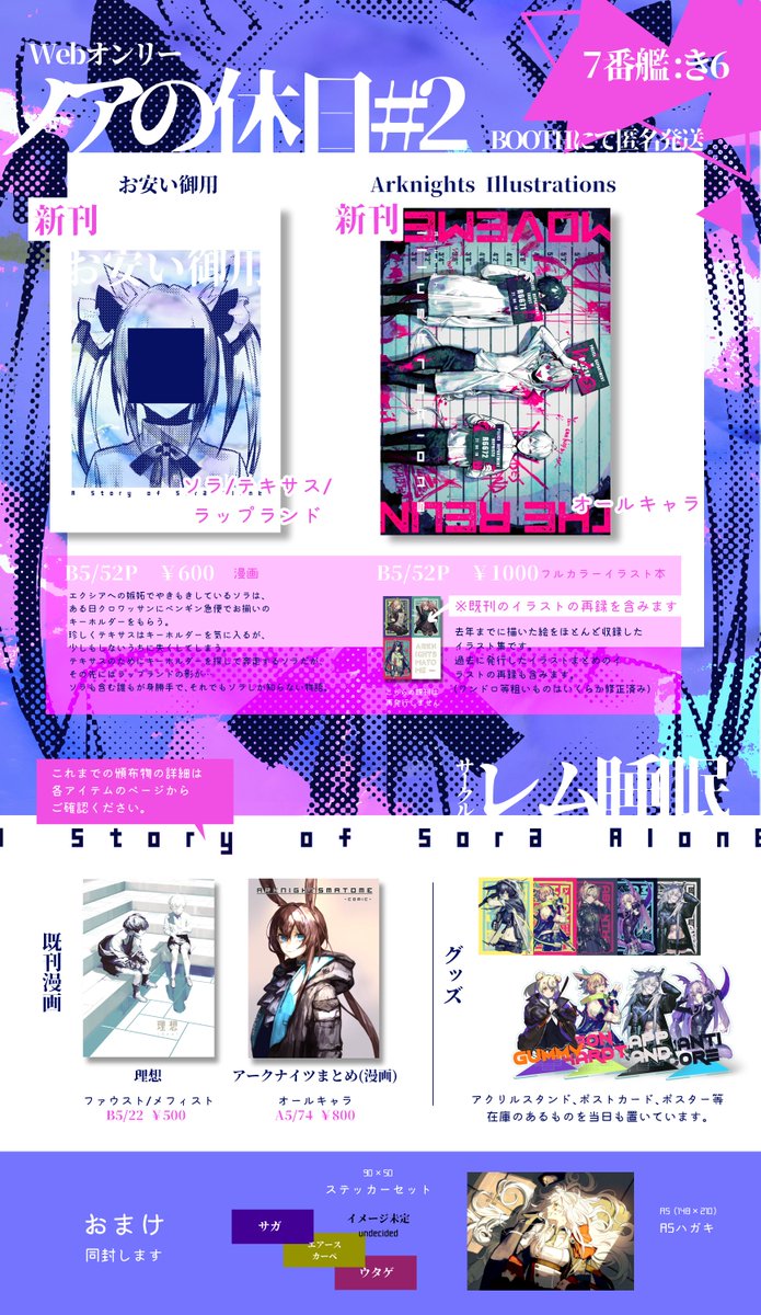 【ノアの休日2】2/23(日) どなたでもWebから来られますので是非どうぞ! ソラ・テキサス、ペンギン急便らの新刊を出します。冒頭18Pのサンプルrem-hinotomi.booth.pm/items/3630339 当日は仕事の具合で常駐は厳しいと思いますが、また告知いたします。BOOTHからになります。 #ノア休2_サークル告知