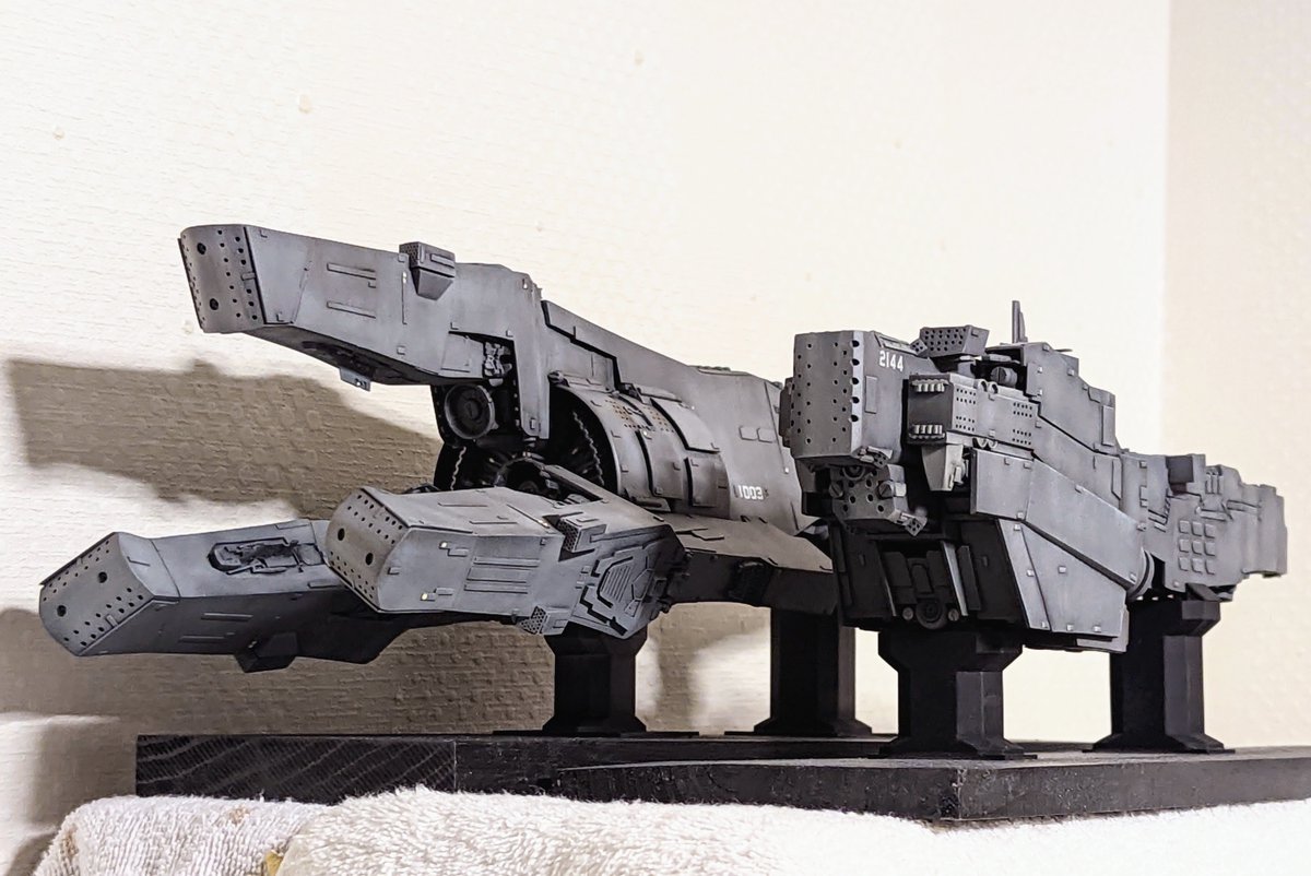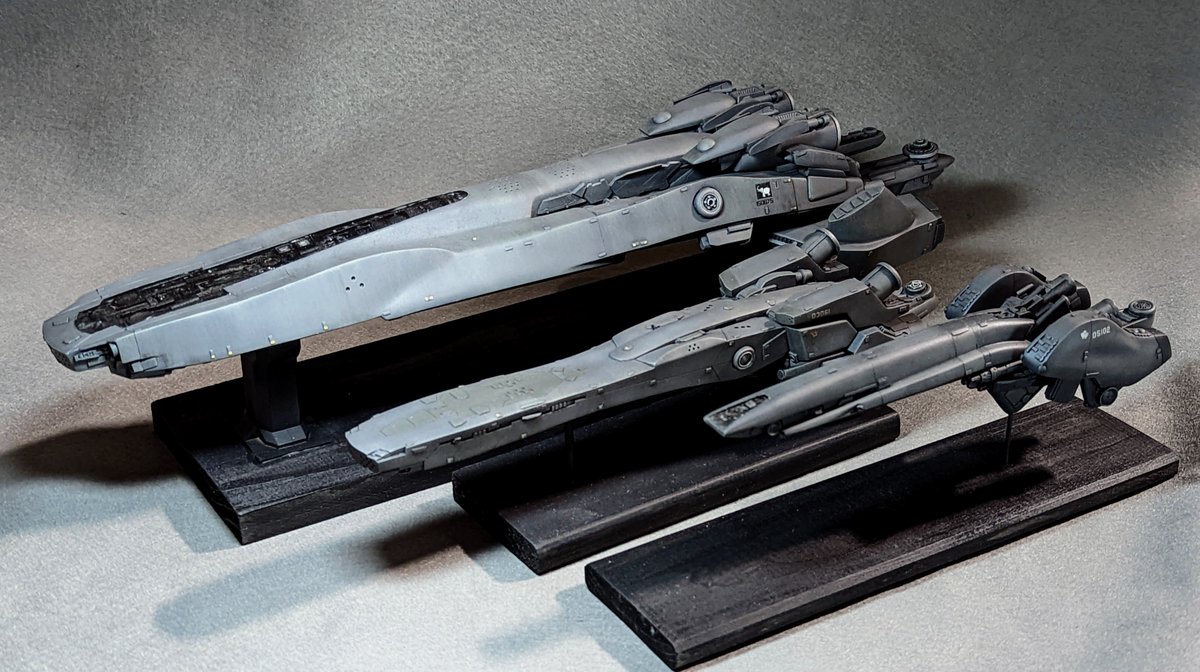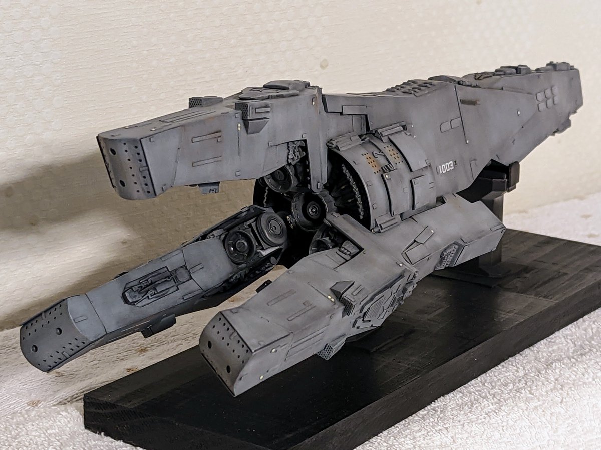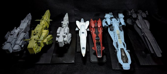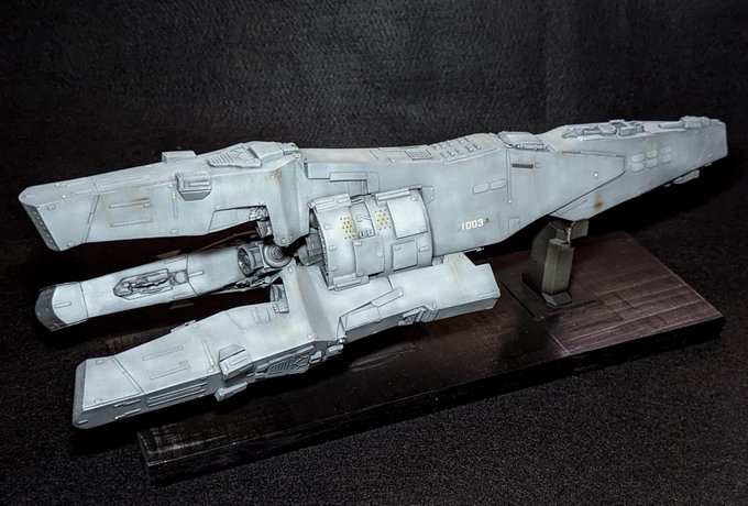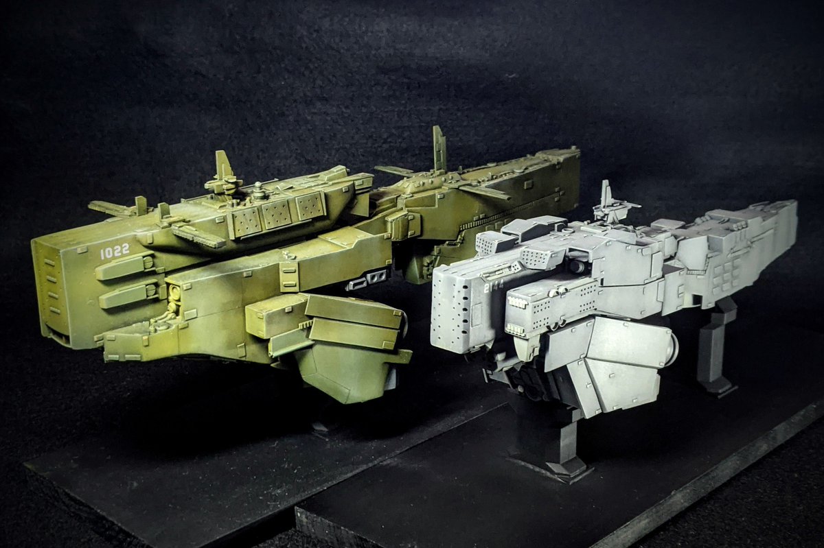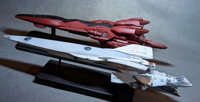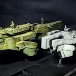 ←デジタル造形 アナログ造形→ 比較的差が小さいベイオウルフですが、やっぱりアナログだと綺麗な曲面出すのが大変で平面っぽい感じになります。とはいえデジタル造形でも曲面モデリングは結構苦労します。 #ノイエ銀英伝 hx.com/canyon0183/sta…