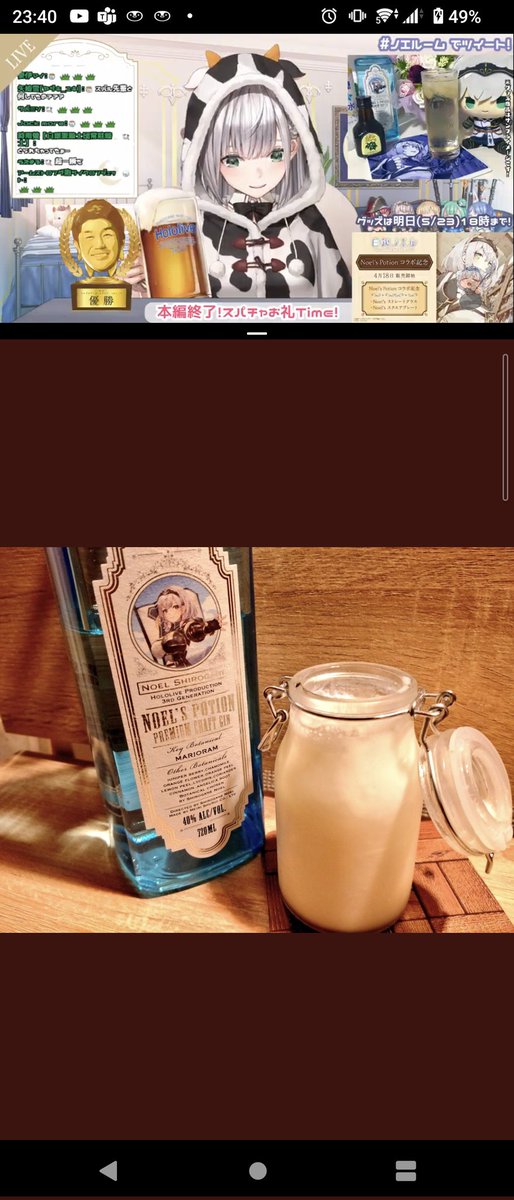 ノエルのポーションジンコーク美味ぁ〜✨✨✨ めっちゃ飲みやすい✨✨✨ 後味のほのかな香りがまた良い…✨✨ サイダーとかでも美味しいかなぁ〜🤔 炭酸水は苦くて苦手… 子供舌なもので…💦💦💦 #白銀ノエル #ノエルのポーション #ノエラート