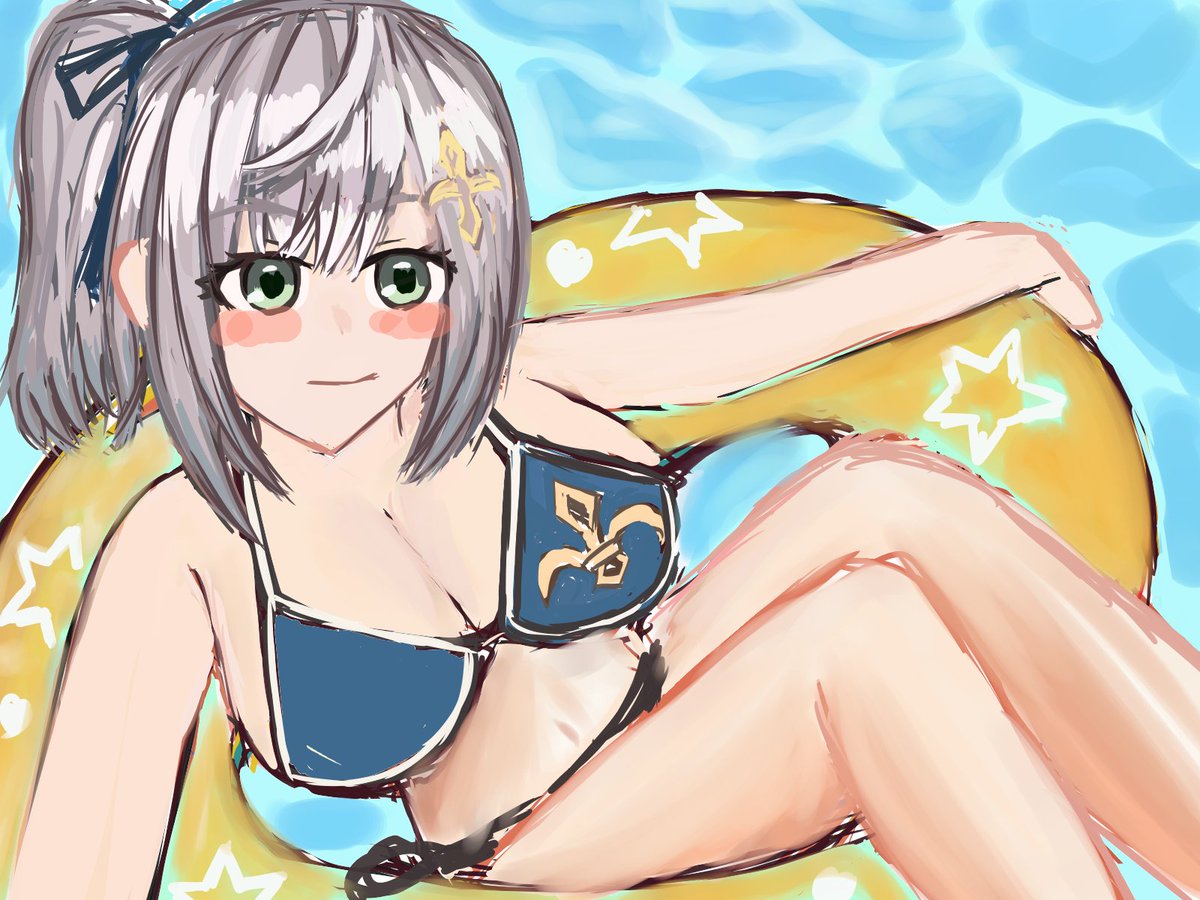 ノエル団長と海デート。最高。 スポーティーな水着姿もも可愛いと思うのです。基本的にビキニ姿が多いからこれは、やられたって感じです。 少し前に浮き輪でプカプカって ファンアートも描いていたので 個人的にまったりのんびりな雰囲気が堪能出来ました #ノエラート #ノエル団長ボイスたすかる
