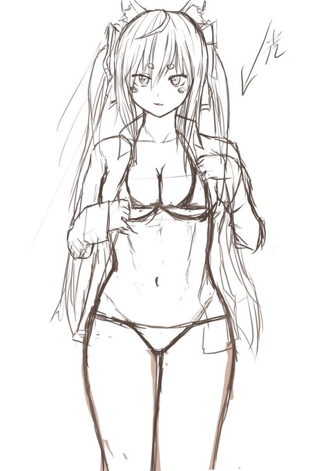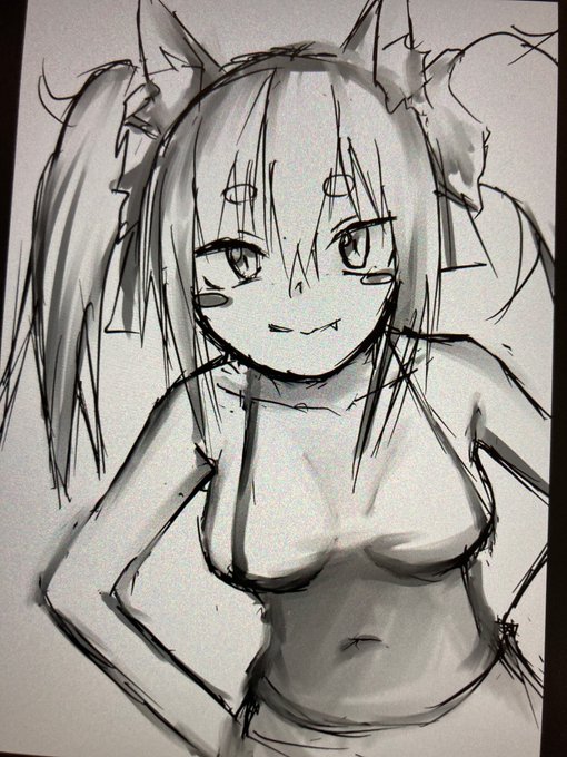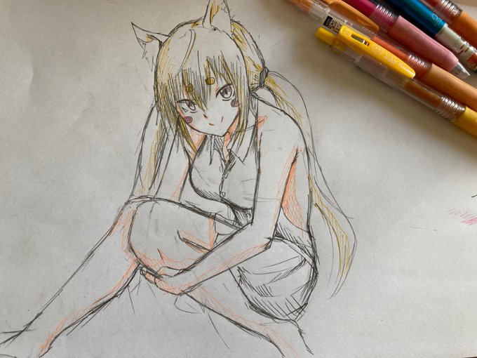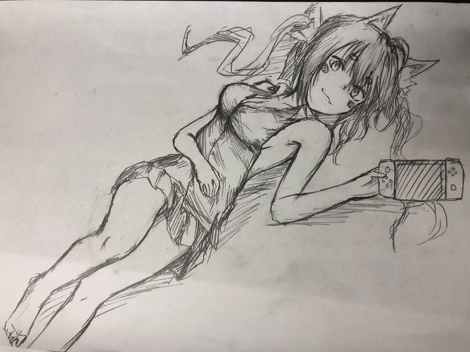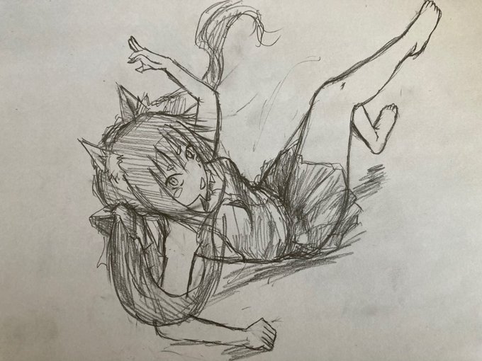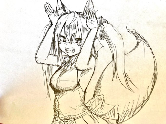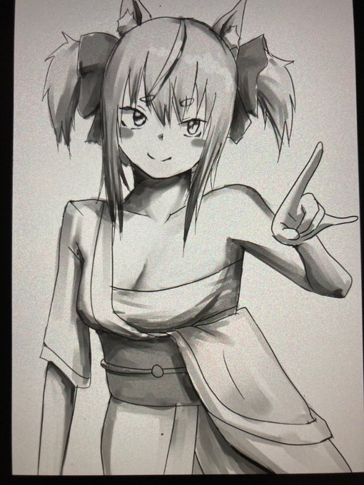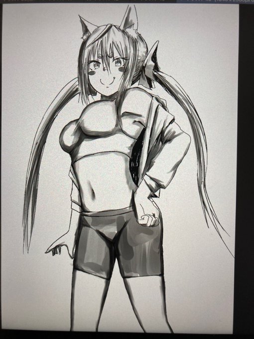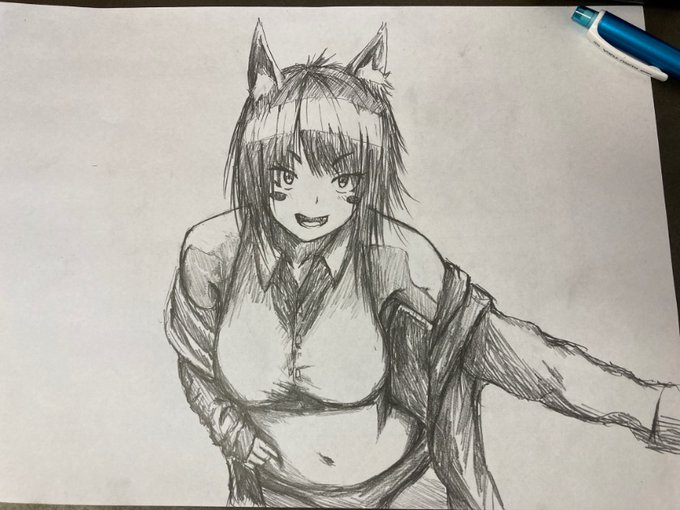 昼休みの落書き。 ミミコのデザインをすごくいじくってみた(●´ω`●) 髪の毛の描き方とか描いた事ない描き方だし、ポージングも模写して自分強化中✌︎('ω'✌︎ ) #ノジャリミミコの生態 #落書き