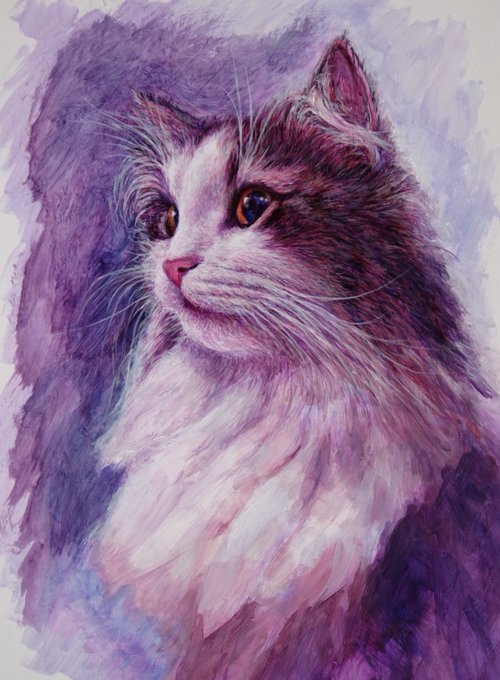 #猫絵 🐈🖼新作です “Pure Princess”(ケント紙にアクリル絵具、28×19cm) モデルは #ノルウェージャンフォレストキャット の女の子😻微妙な色合いですが実物は画像より淡い感じ🎨清楚なプリンセスのイメージです😅 #絵描きさんと繋がりたい #猫好きさんと繋がりたい #アナログ絵 #アクリル画