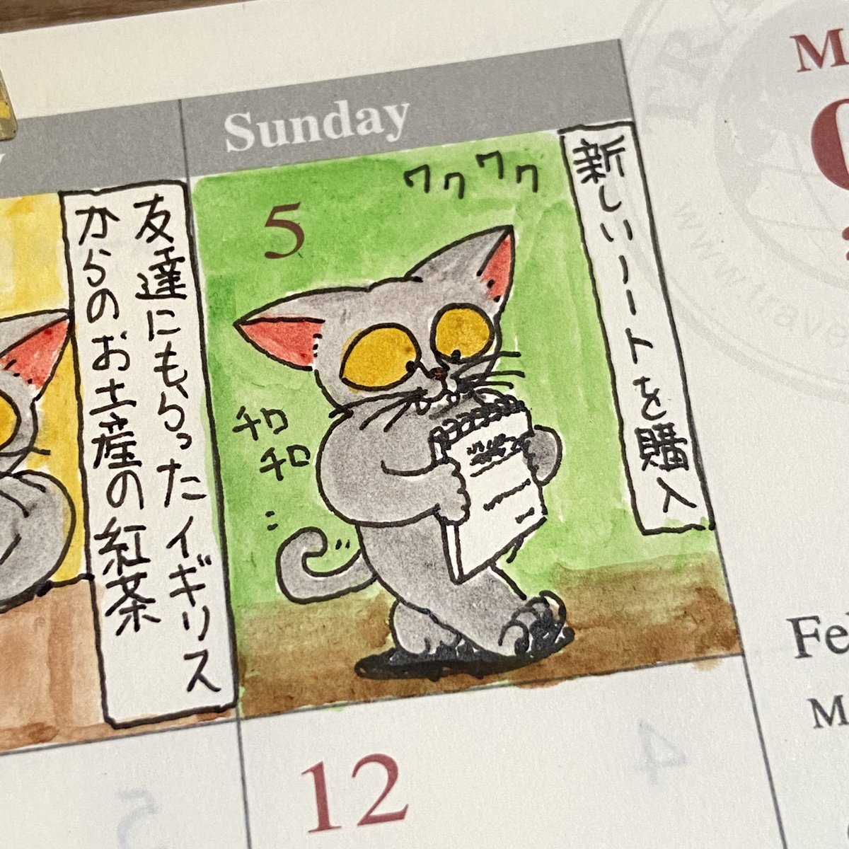 新しいノートを買った #ノート #1日1絵 #水彩画 #手帳 #トラベラーズノート #猫 #スケッチジャーナル #マンスリージャーナル #絵 #イラスト #イラスト好きな人と繋がりたい #絵描きさんと繋がりたい