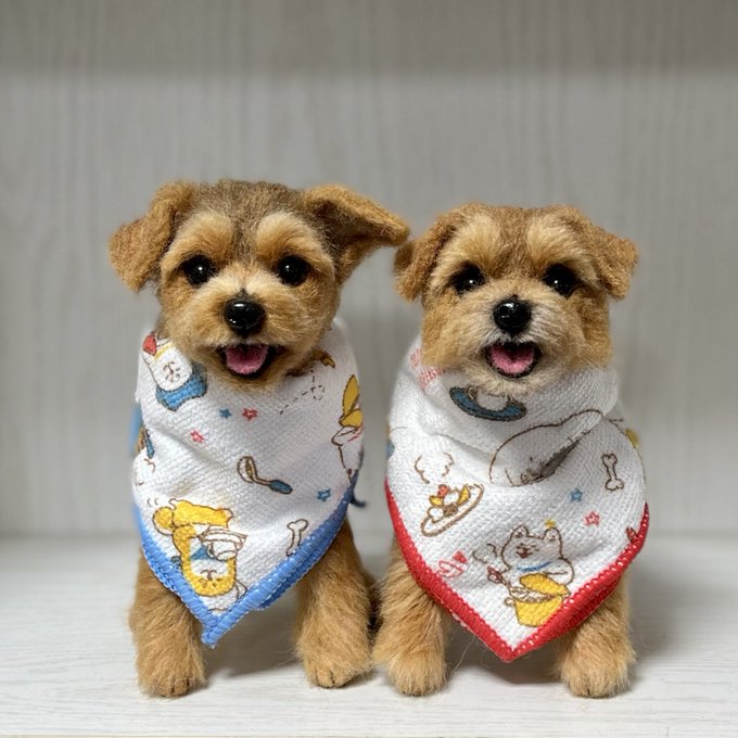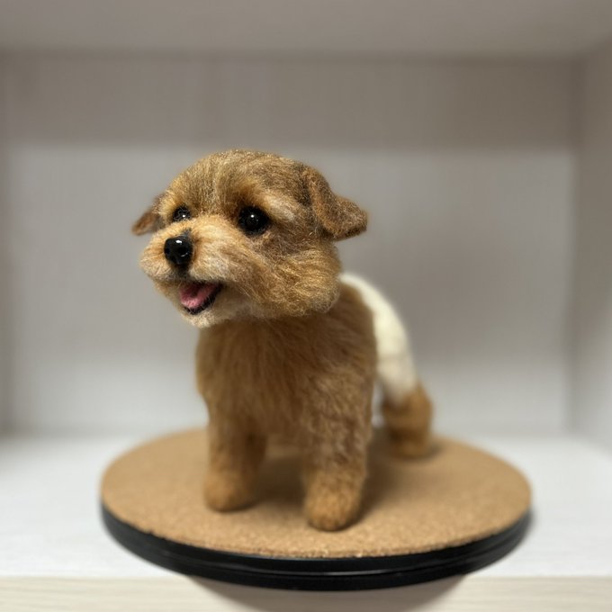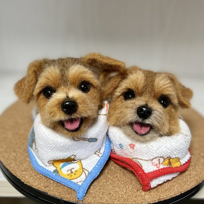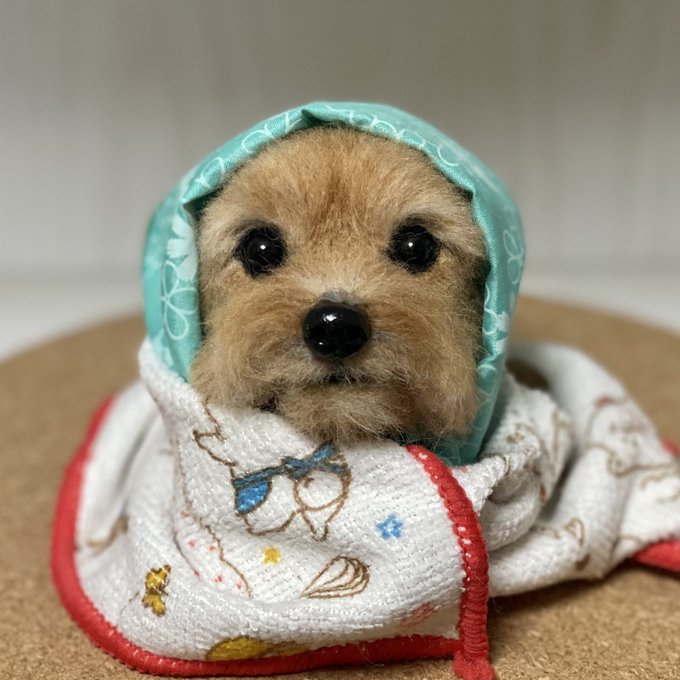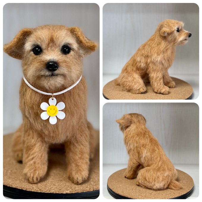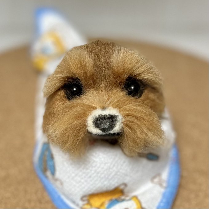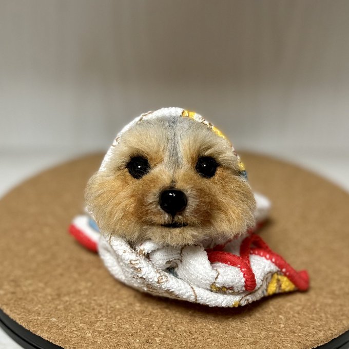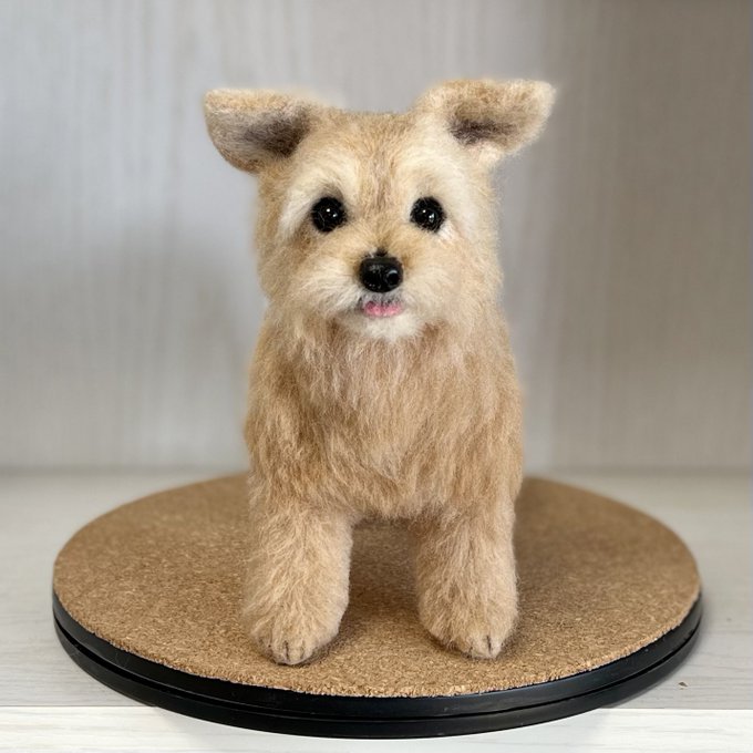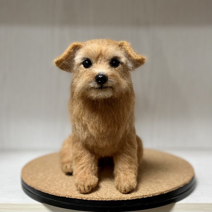 ノーフォークさん、3ワンさん目もお顔OKみたいです🥰良かった! 同じ犬種でもみんなお顔とか色が違ってみんな可愛いんですよねぇ🥰 お顔だけだと生首みたいで怖いと言われることもあるけど🤣怖かったらごめんなさい🙏 #ノーフォークテリア #羊毛フェルト