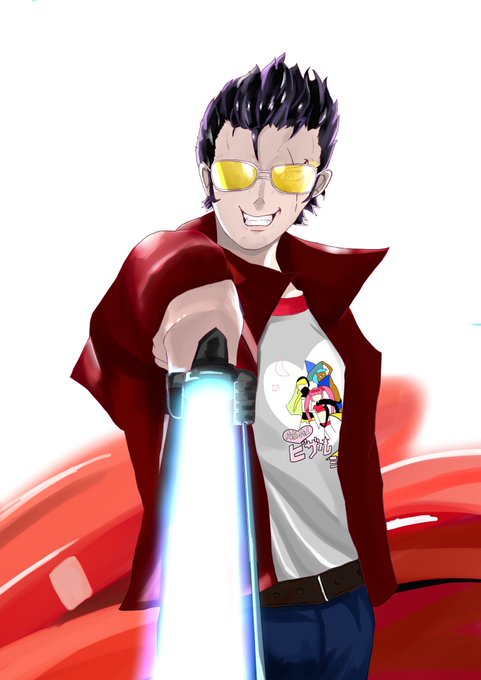 狂い咲きの楽園へようこそ トラヴィス・タッチダウン 描いた! ポイントはグラサンの奥の目と ビザールジェリーのTシャツ! 楽しかった #イラスト #ノーモアヒーローズ #お絵描き #NomoreHeroes #イラスト好きさんと繋がりたい #illustration