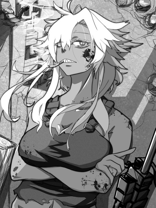 ハイエナしか描いてねえ・・・! 描いたイラストには勝手に設定加えましたけどね😛 三白眼くせっ毛ギザ歯キャラボイス 全てがどストライク! #今年描いた絵を晒そう #ラストオリジン #LastOrigin #라스트오리진 #ハイエナ #イラスト