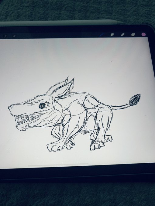 キズハイエナです。 成長するとキズのような模様が出てくる。厨二病っぽさが強いほど群れ長になりやすい しかしコイツの愛称は「くつ下」 #イラスト好きな人と繋がりたい #絵描きさんと繫がりたい #オリキャラ #ハイエナ #厨二病 #くつ下
