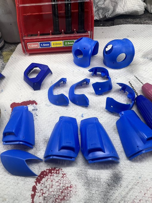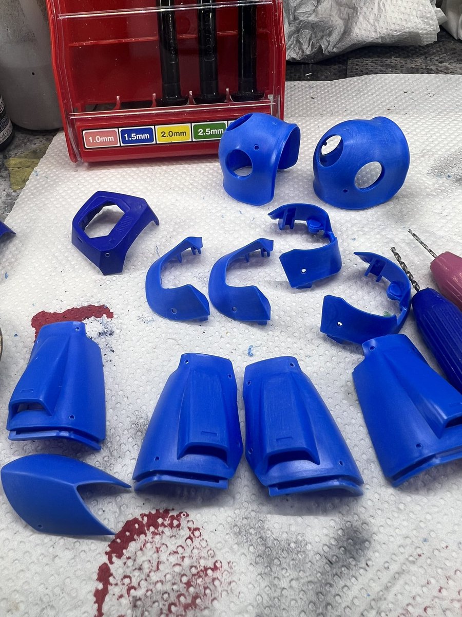 昼休み模活〜MGグフVer.2.0 外装パーツに今回はメタルパーツを使用するという事で穴あけ💦 そしてパーツ洗浄〜で只今乾燥中 夜から黒サフ吹きを予定です Ver.2.0グフなんだけど基本色濃いめの蒼で仕上げるかな?🙄 #ガンプラ好きと繋がりたい #ガンプラ塗装 #ハイキューパーツ