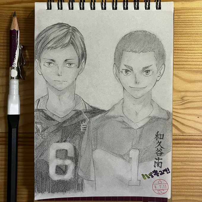 #ハイキュー #ハイキューイラスト #凸がき #スケッチブック #模写修行 #blackwing #ハイキュー表紙シリーズ #黒尾鉄朗 #弧爪研磨 幼なじみっていいよな! クロが人見知りやったとか信じられぬ! instagr.am/p/Chx7XInPvxM/