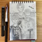 #ハイキュー #ハイキューイラスト #凸がき #スケッチブック #模写修行 #blackwing #ハイキュー表紙シリーズ #黒尾鉄朗 #弧爪研磨 #音駒高校排球部 大人数やったけどこれは楽しく描けた🤣 洗濯とか色々しつつ5時間半ぶっ通しで描いた!!...のにタイムラプスは20秒w instagr.am/p/ChIlI4Ph_HN/