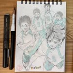 #ハイキュー #ハイキューイラスト #凸がき #スケッチブック #模写修行 #blackwing #ハイキュー表紙シリーズ #青葉城西 #及川徹 #岩泉一 #花巻貴大 #松川一静 #渡親治 今回一色だけ水彩! 大人数辛い← instagr.am/p/CgEJlZWpxv4/