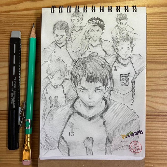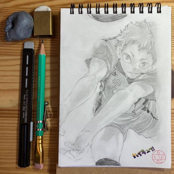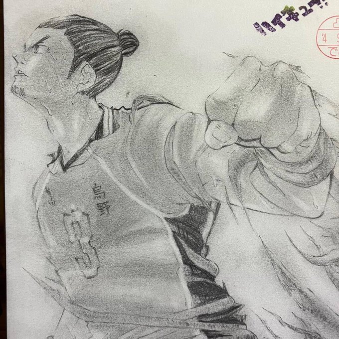 #ハイキュー #ハイキューイラスト #凸がき #スケッチブック #模写修行 #blackwing #ハイキュー表紙シリーズ #東峰旭 旭さんの笑顔に最高にね、癒されるよね! んふ instagr.am/p/CiiowahhfvO/