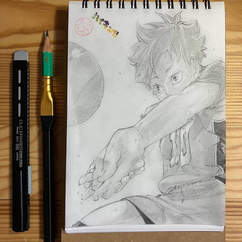 #ハイキュー #ハイキューイラスト #凸がき #スケッチブック #模写修行 #blackwing #ハイキュー表紙シリーズ #影山飛雄 消しゴムでぐちゃあってなって変な影できちゃった🤣 instagr.am/p/Cgtrol3Jcnu/