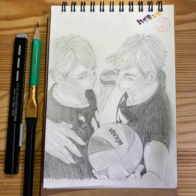 #ハイキュー #ハイキューイラスト #凸がき #スケッチブック #模写修行 #blackwing #ハイキュー表紙シリーズ #宮侑 #宮治 ツムっぽく、 サムっぽく描けて、満足! instagr.am/p/Cg5HA2vhG2G/