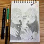 #ハイキュー #ハイキューイラスト #凸がき #スケッチブック #模写修行 #blackwing #ハイキュー表紙シリーズ #稲荷崎高校 #稲荷崎高校排球部 大きいスケブ買ったのに安定のはみ出し&下余り🤣 下描きの時点でとても好きな顔に描けたツムと角名! でもバランスおかしくて描き直し前の記念撮影🤣