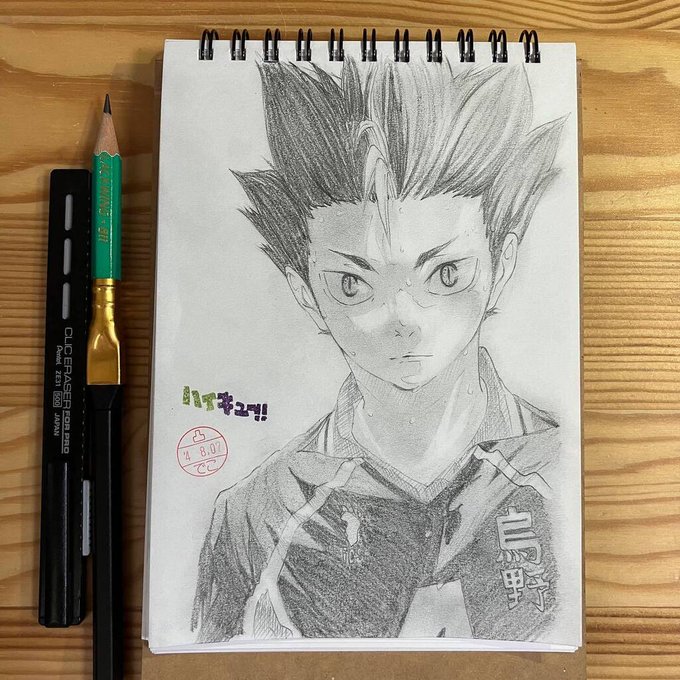 #ハイキュー #ハイキューイラスト #凸がき #スケッチブック #模写修行 #blackwing #ハイキュー表紙シリーズ #西谷夕 正面難しい...!でもこののやっさん最高にカッコいい!!! instagr.am/p/Cg-Km6OhgmW/