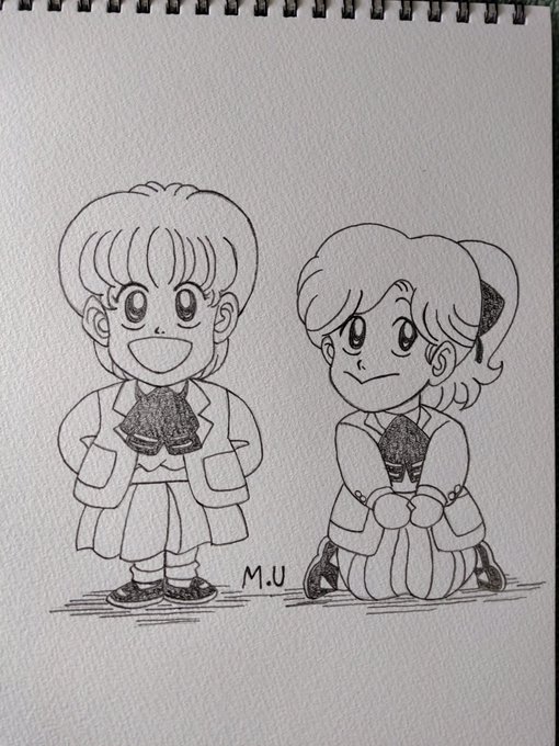 ハイスクール奇面組、河川唯、宇留千絵、描いてみた、二頭身バージョン …今日もがんばろうね #奇面組 #河川唯 #宇留千絵 #鉛筆画 #模写 #3年奇面組 #ハイスクール奇面組 #イラスト #イラスト好きな人と繋がりたい #みんなで楽しむTwitter展覧会