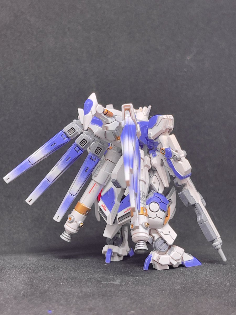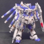 RG Hi-ν 膝関節の鳥足加工チャレンジ。凄いあちこち削ったけど、キットの構造を壊さないままだとこのくらいしか角度変わらんかった。流石に手強いなぁ。何度もバラしてを繰り返したから、フレームのパーツはかなりキズつけてしまった。 #ハイニュウ #ガンプラの画像を貼るとRTされると聞いて