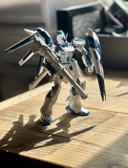 おはようございます RG hi-νガンダム 一応完成 白/薄紫の墨入れは タミヤ エナメル 紫(X-16)を溶いて 筆で入れてます amzn.to/43BqoE3 後でもう少し写真上げるかも 今日もよろしくお願いします! #ガンプラ #RG #ハイニューガンダム