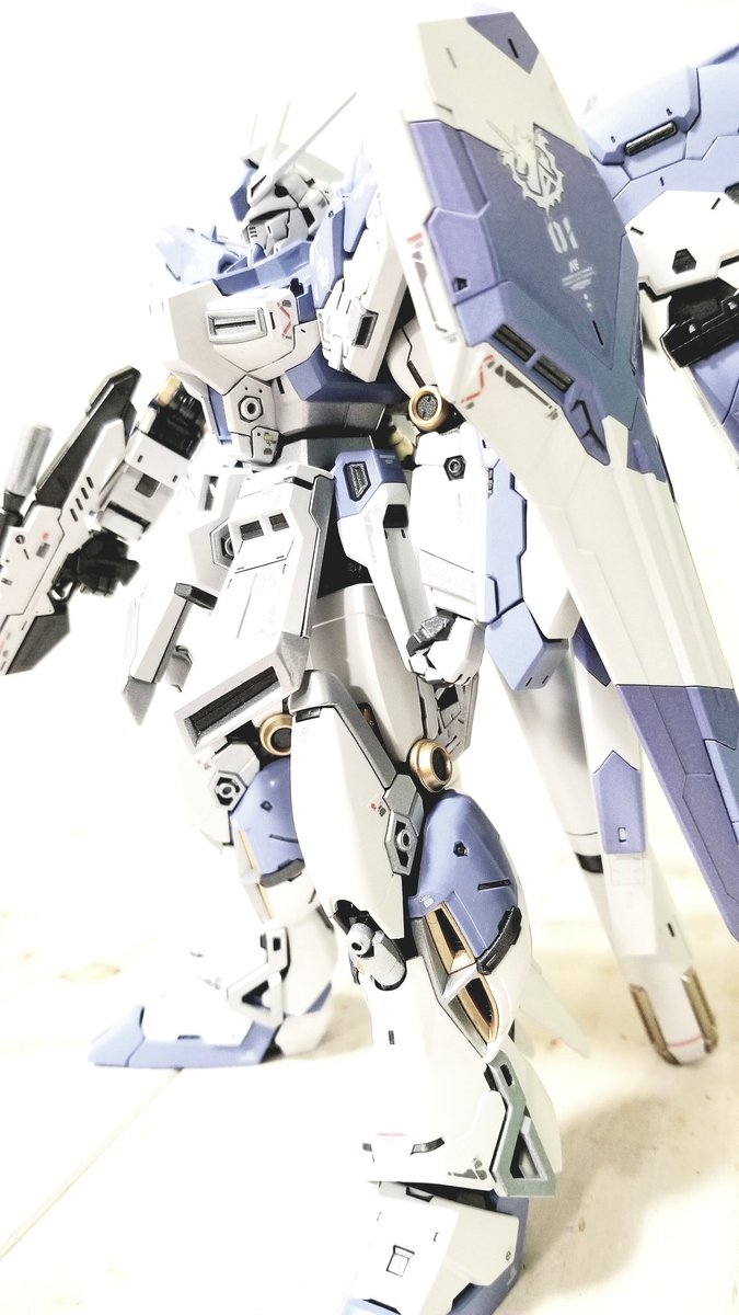 おはようございます RG hi-νガンダム 一応完成 白/薄紫の墨入れは タミヤ エナメル 紫(X-16)を溶いて 筆で入れてます amzn.to/43BqoE3 後でもう少し写真上げるかも 今日もよろしくお願いします! #ガンプラ #RG #ハイニューガンダム