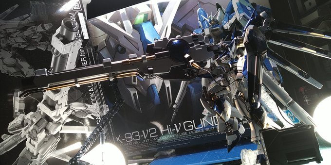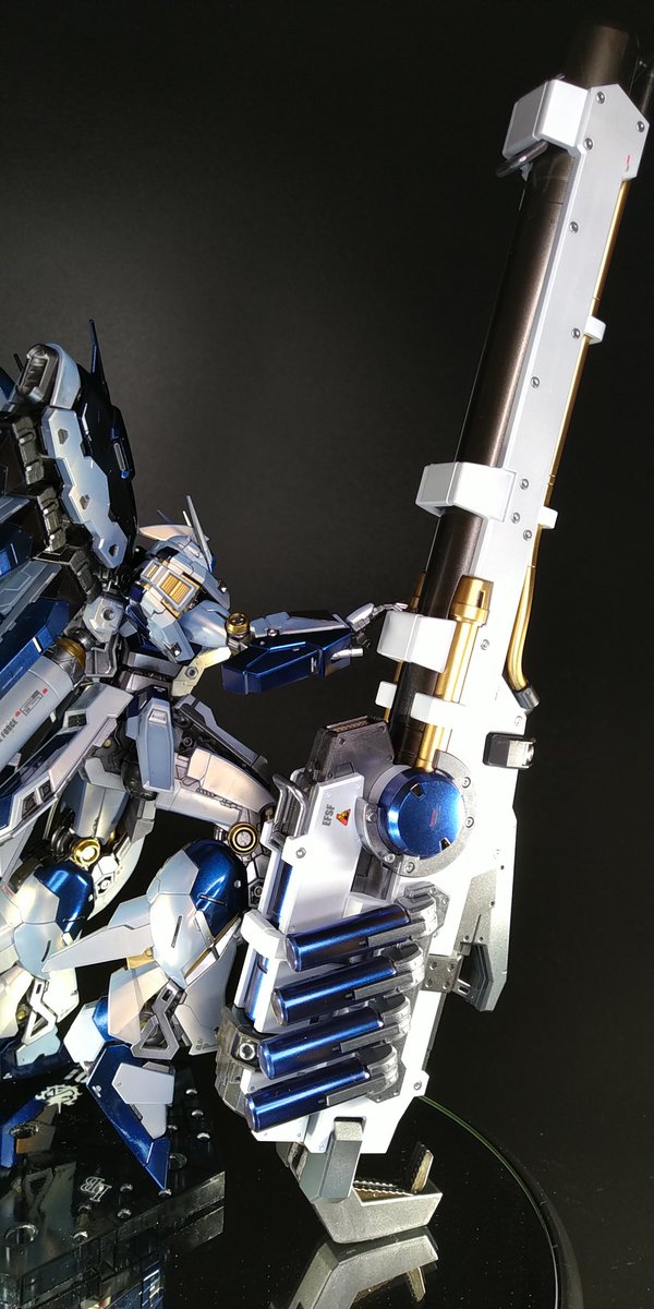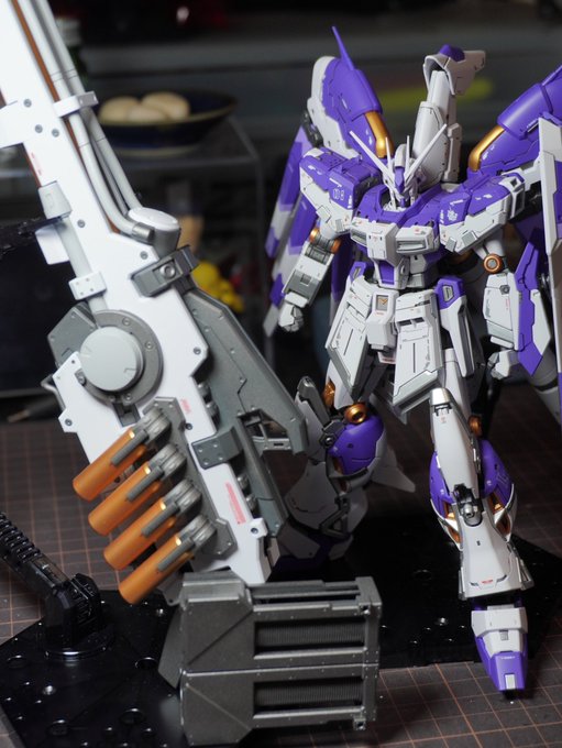 黒背景で撮影中 明日には白背景も試してみるつもり #Hiνガンダム #ハイパーメガバズーカランチャー #ガンプラの画像を貼るとRTされると聞いて はよ正式御披露目したいのでネタ元のベース限定チタニウムフィニッシュ発売日まだですかね?