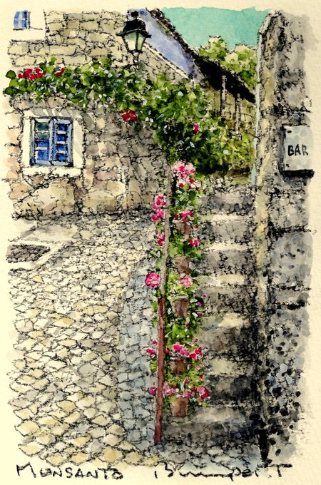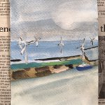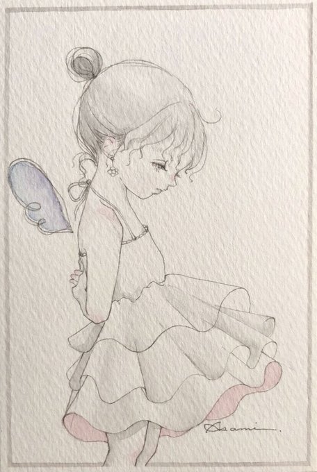 ミニ作品 【マドモワゼル】 2023年.アルシュ細目.透明水彩.マスキングインク #イラスト #レトロ #透明水彩 #ミニ原画 #ポストカードサイズ #ハガキサイズ いぬけんやさん(@inu_ken_ )の4月末のグループ展 #もういちどマイラブリー で販売します🫶🏻
