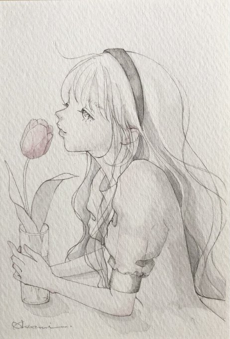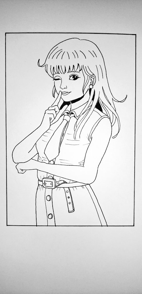 #おねだり #ハガキサイズ #線画 #アナログ絵で魅せてみよ #イラスト #イラスト好きな人と繋がりたい #オリキャラ #オリキャラは性癖の見本市 「う~ん……お願い。イイねやフォローしてほしいの。何となく気になるでしょ」