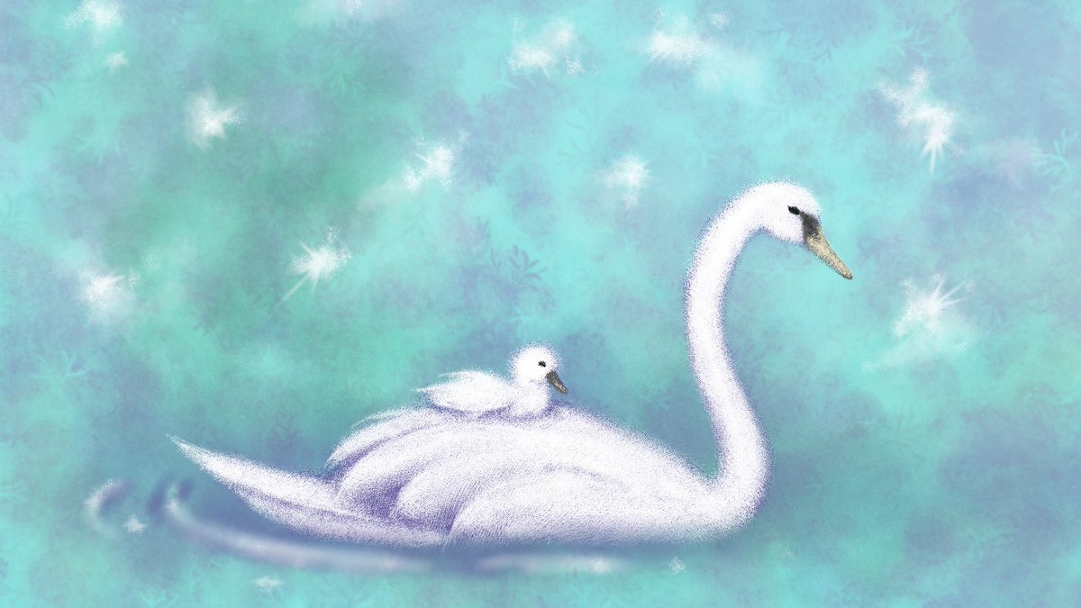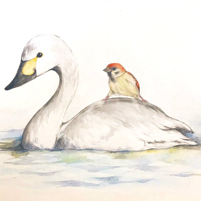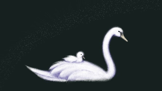 「お母さんの背中にいると大船に乗った気分だよ」 MV用のハクチョウさん きっと明日もハクチョウさん 描いてて幸せしかない……❤️ #コルクラボマンガ専科 #イラスト好きな人と繋がりたい #鳥好きさんと繋がりたい #ハクチョウ