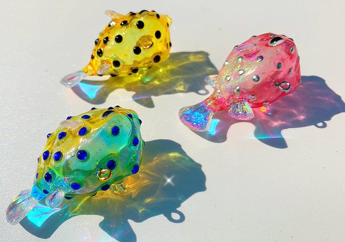 お守りにおひとついかが? もうすぐ販売😌✨ #空洞レジン #バルーンレジン #ハコフグ #フグ #Hollowresin #Balloonresin #Trunkfish #Pufferfish