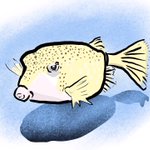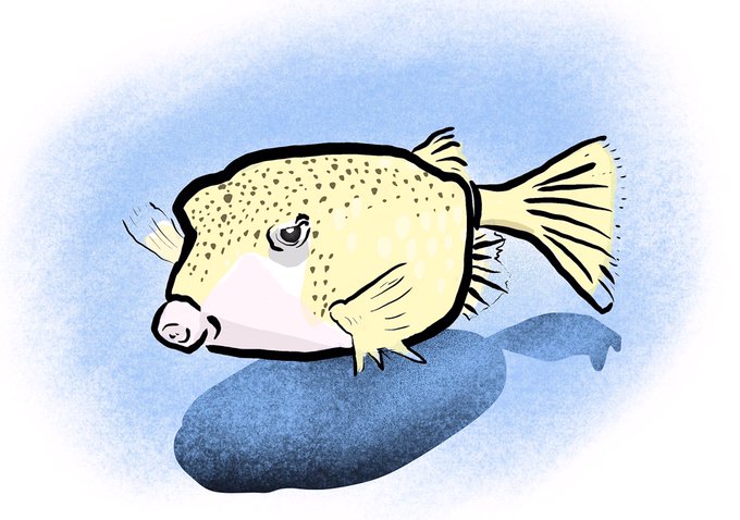 描けました😊‼️✨ 小品ですがお納めください🍀 節分なので・・・ 思いつきシリーズ・季節の風物詩編 「福はうち」より 「ふぐパウチ」 #イラスト #イラスト好きな人と繋がりたい #絵描きさんとつながりたい #みんなで楽しむTwitter展覧会 #アトリエの系譜 #ダジャレ #ハコフグ
