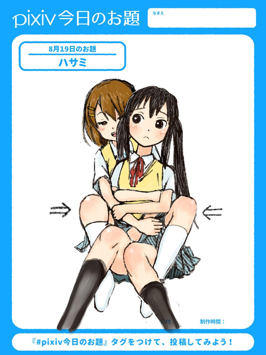 #Sketchドロー #ハサミ #けいおん #平沢唯 #中野梓 (なんかめっちゃ挟んでくるんですけど、それと、口笛吹けてませんからね) どれが唯の手で梓の足か訳がわからんく... sketch.pixiv.net/items/44922959…
