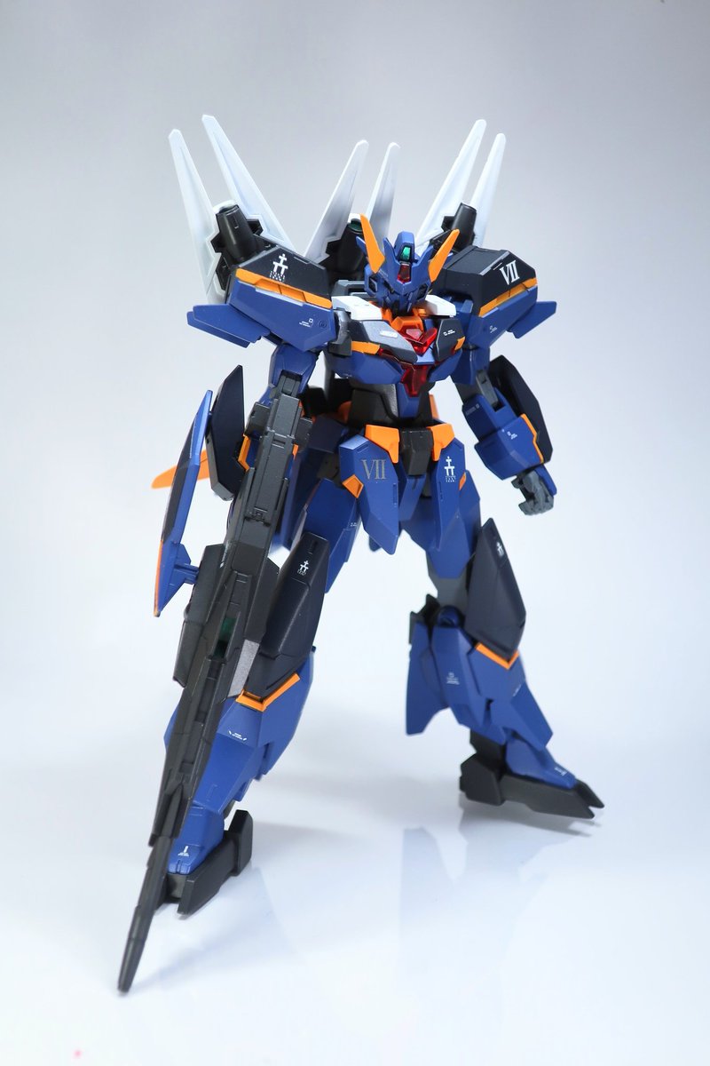 #ハスハシガンプラ展示会 ユーラヴェンガンダム[ガイスト]です。ヘキサギアのパーツを中心にミキシングして強化外骨格を作りました。パーツを分離させてノーマルのユーラヴェンガンダムにもできます。