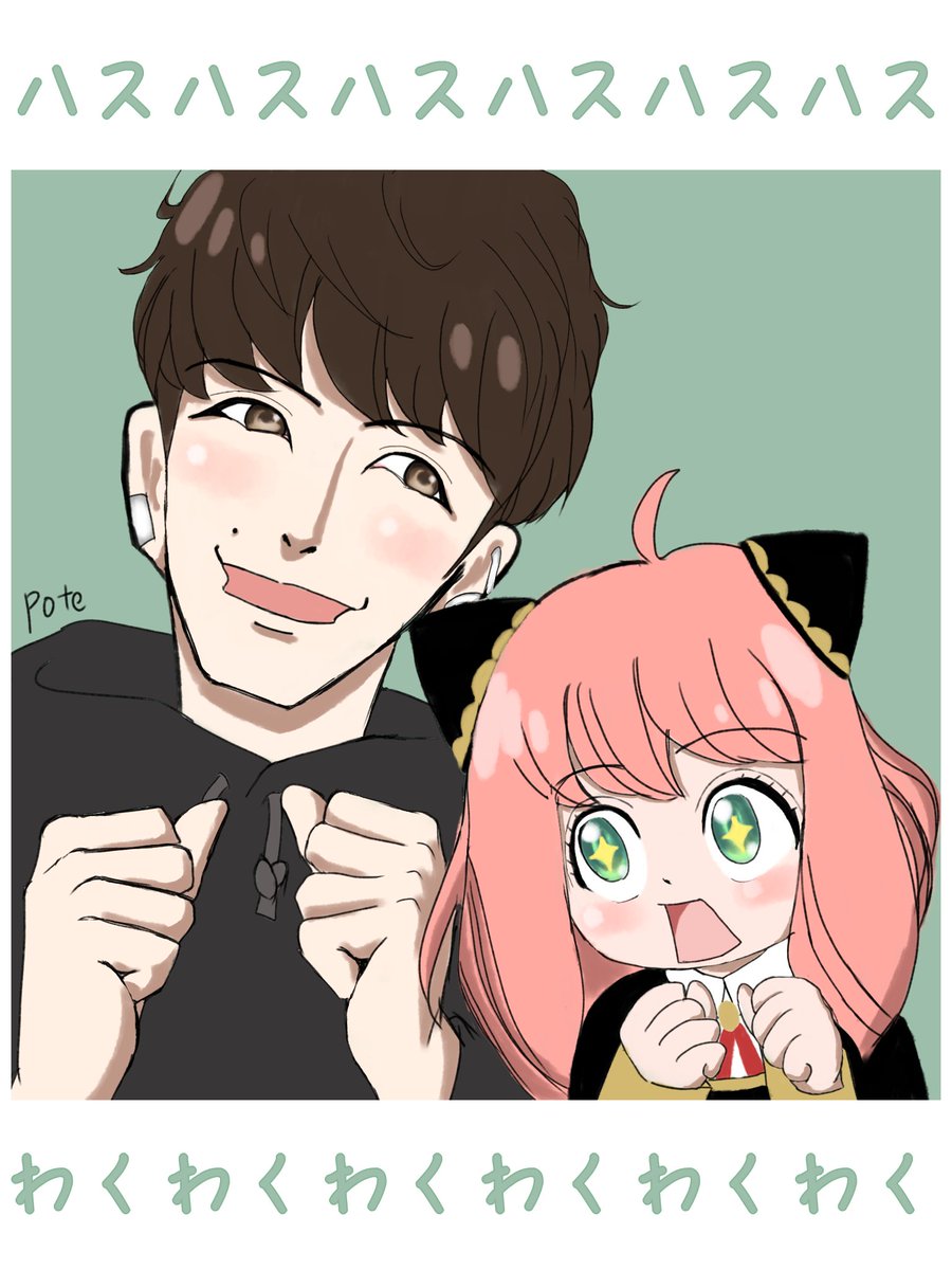 いよいよ今夜ですね✨ 23時が楽しみ💕 わくわくハスハスして待ってます🥰 スパイファミリー風に描いてみました✨ #ファンアート #SPY_FAMILY #スパイファミリー #星野源喜劇 #げんおにいさん #アーニャ・フォージャー #わくわくわくわくわくわくわくわくわくわーく #ハスハス