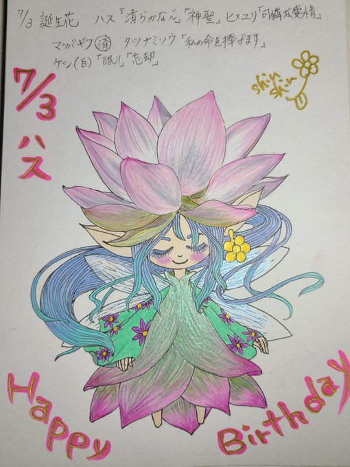 7月3日生まれの皆さん誕生日おめでとうございます😁😁✨ #毎日誰かの誕生日 #誕生日 #花の妖精シリーズ #誕生花 #花言葉 #毎日投稿 #イラスト #誕生日おめでとう #HappyBirthday #蓮 #ハス #花のある暮らし #花 #illustration #handdrawing #fyp #オリジナルキャラクター